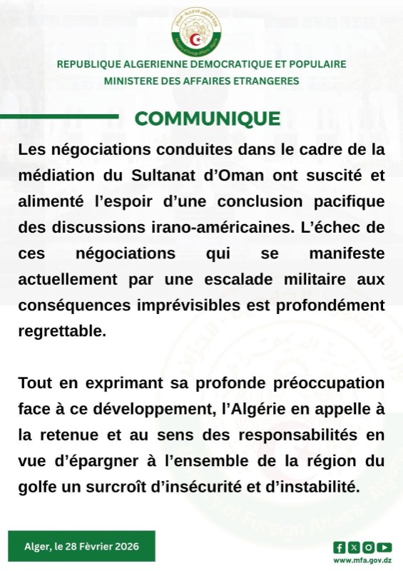 تُرحب الجزائر بفحوى البيان الصادر اليوم عن سلطات دولة الفاتيكان ا... اقرأ المزيد
