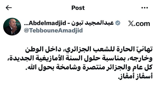 رئيس الجمهورية السيد عبد المجيد تبون يهنئ على حسابه الخاص..