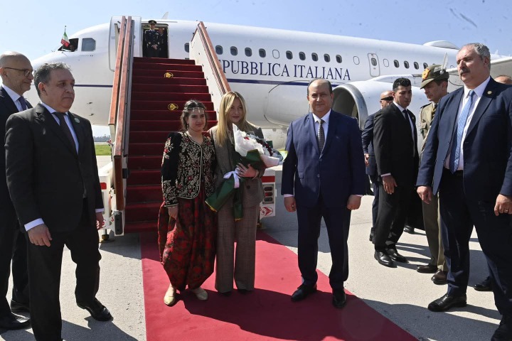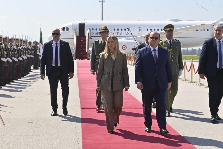 حلت بالجزائر اليوم الأربعاء 25 مارس 2026، رئيسة مجلس وزراء جمهورية إيطاليا، السيدة جورجيا ميلوني، في إطار زيارة عمل وصداقة. وكان في استقبالها لدى وصولها إلى مطار هواري بومدين الدولي، الوزير الأول، السيد سيفي غريب، مرفوقا بوزير الدولة وزير الشؤون الخارجية والجالية الوطنية بالخارج، والشؤون الإفريقية، السيد أحمد عطاف، وزير الدولة وزير المحروقات والمناجم السيد، محمد عرقاب، ومستشار السيد رئيس الجمهورية المكلف بالشؤون الدبلوماسية، السيد عمار عبة، والأمين العام لوزارة الدفاع الوطني، السيد اللواء محمد الصالح بن بيشة.