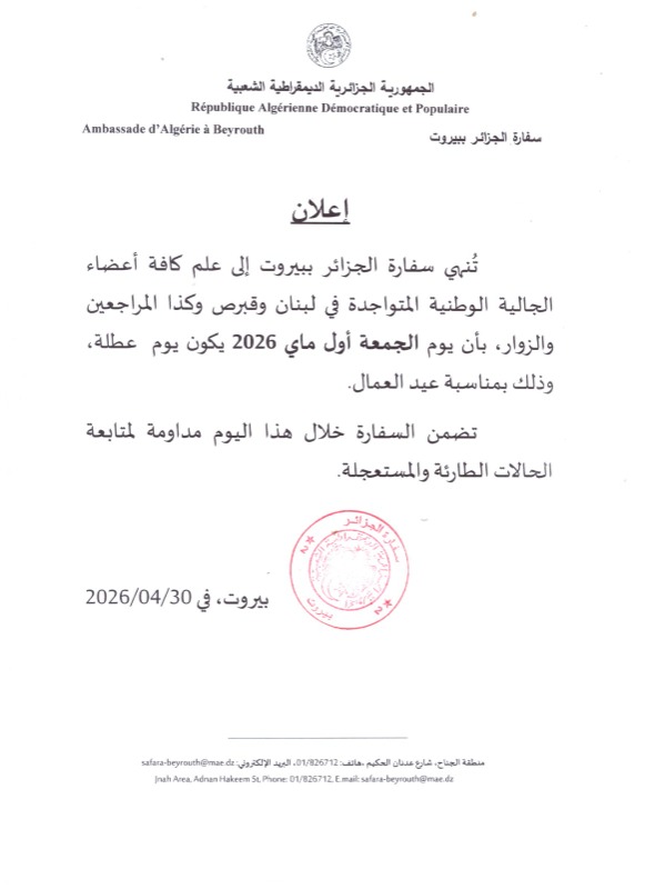 أشرف كاتب الدولة لدى وزير الشؤون الخارجية،المكلف بالجالية الوطنية، السّيد سفيان شايب Sofiane Chaib ، اليوم 28 أفريل 2026، بمعية رئيس المجلس الوطني ا...