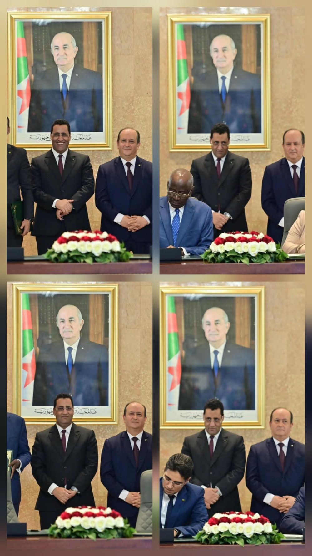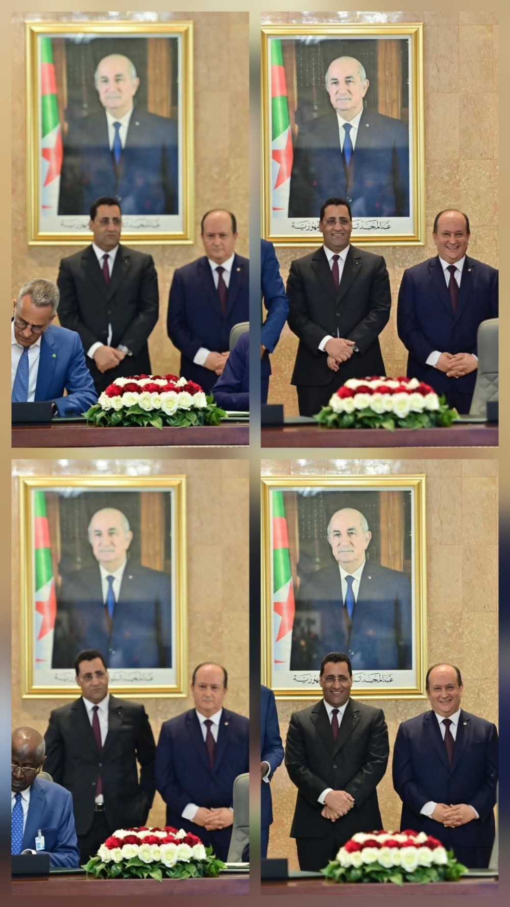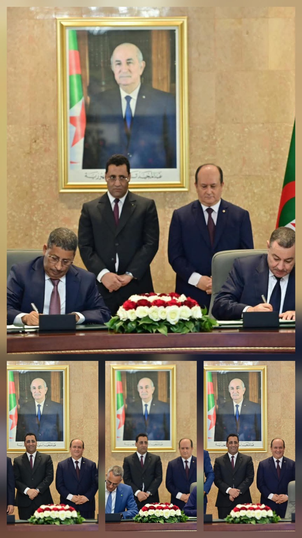 أشرف الوزير الأول السيد #سيفي_غريب، والوزير الأول للجمهورية الإسلامية الموريتانية، السيد المختار ولد أجاي، على مراسم توقيع عدد من الاتفاقات ومذكرات التفاهم وبرامج التعاون التي تغطي قطاعات الداخلية والأمن والمحروقات والمالية والطاقة والصناعة والصناعة الصيدلانيّة والفلاحة والصيد البحري والنقل والتجارة والسكن والتربية والتعلم العالي والتكوين المهني والشباب والرياضة والعمل والاتصال والثقافة والعلاقات مع البرلمان والبيئة.