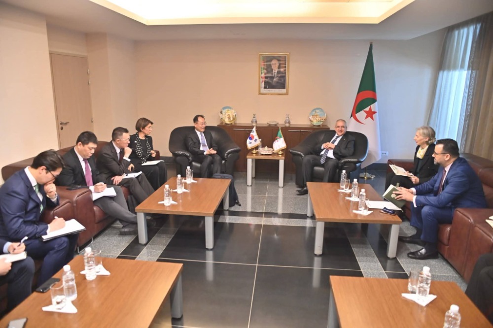استقبل الأمين العام لوزارة الشؤون الخارجية، السيّد لوناس مقرمان، هذا الثلاثاء 14 أفريل 2026، السيّد بارك جونغ هان، نائب وزير مكلّف بالشؤون الاقتصادية لدى وزارة الشؤون الخارجية لجمهورية كوريا، وذلك في إطار زيارة العمل التي قادته إلى الجزائر. وقد شكّل هذا اللقاء سانحة للتطرّق لعلاقات الصداقة والتعاون التي تجمع الجزائر وكوريا، لاسيّما في إطار اتفاقية الشراكة الإستراتجية المبرمة بين البلدين والتي نحتفي بعيدها العشرين هذه السنة. كما استعرض الطرفان سبل تعزيز الروابط الاقتصادية والتجارية في كافة المجالات، عبر إعادة تفعيل آليات التعاون المؤسساتي وبرمجتها خلال الأشهر المقبلة، وكذا إرساء دينامكية جديدة من شأنها جلب المزيد من الاستثمارات.