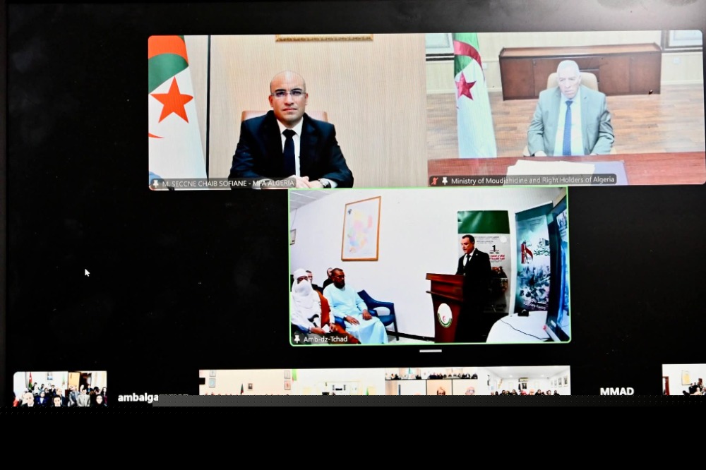 #بيان_صحفي: في إطار إحياء ذكرى يوم الشهيد، المصادف لـــــ 18 فيفري من كل سنة، أشرف اليوم كاتب الدولة لدى وزير الشؤون الخارجية، المكلف بالجالية الوطنية بالخارج، السيد سفيان شايب Sofiane Chaib بمعية زميله في الحكومة، وزير المجاهدين وذوي الحقوق، السيد عبد المالك تاشريفت، على لقاء نُظم عبر تقنية التحاضر عن بُعد، مع عدد من رؤساء البعثات الدبلوماسية والقنصلية الجزائرية، بمشاركة أفراد من الجالية الوطنية المقيمة بالخارج. وفي كلمته بهذه المناسبة، أكد السيد كاتب الدولة أن هذه الفعالية التي تنظم لأول مرة بمشاركة السيد وزير المجاهدين وذوي الحقوق، تندرج في سياق سلسلة المبادرات التي تطرحها وزارة الشؤون الخارجية و أجهزتها الدبلوماسية و القنصلية تجاوبا مع اهتمامات أفراد جاليتنا في توريث الرصيد التاريخي لوطننا لدى أبنائهم وتعزيز روح الانتماء الوطني لديهم. كما أوضح أن هذا النشاط الذي يشمل عدة ممثليات دبلوماسية وقنصلية بعدة دول من مختلف القارات، يأتي في إطار العمل التنسيقي بين وزارة الشؤون الخارجية و وزارة المجاهدين وذوي الحقوق، عملا بالتوجيهات السامية للسلطات العليا للبلاد وللأهمية البالغة التي توليها لصون الذاكرة الوطنية ونقلها إلى الأجيال الصاعدة. ومن جهته، أكد وزير المجاهدين وذوي الحقوق أن إحياء يوم الشهيد يندرج ضمن مسعى الدولة الرامي إلى تخليد تضحيات شهدائنا الأبرار وصون الذاكرة الوطنية، مشيدًا بأهمية إشراك أفراد الجالية الوطنية بالخارج في مختلف الفعاليات المخلِّدة للمناسبات الوطنية. وزارة المجاهدين و ذوي الحقوق - Ministry of Moudjahidine and Right Holders