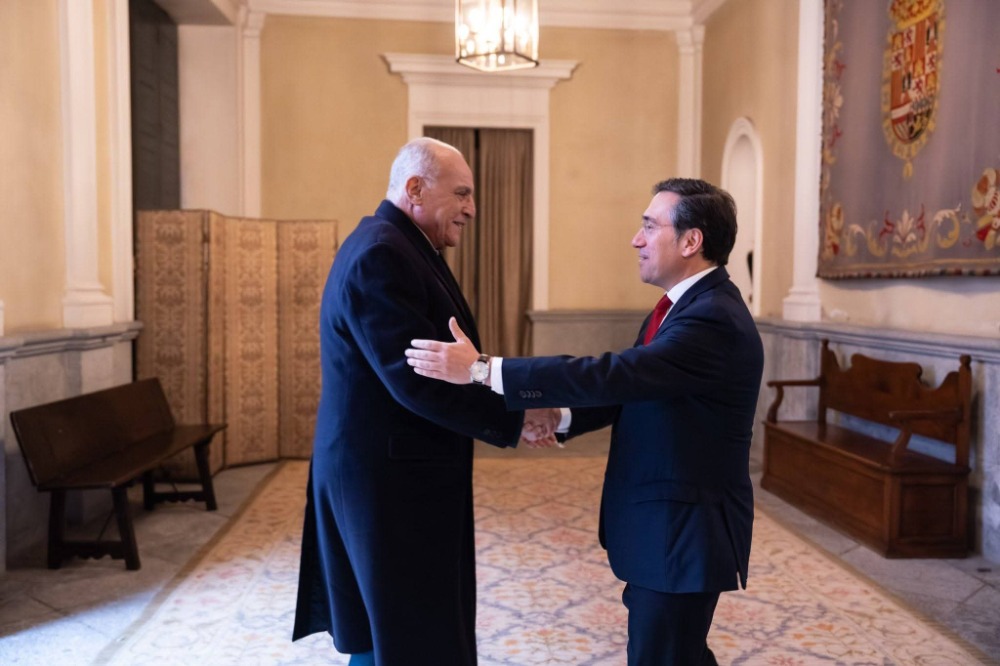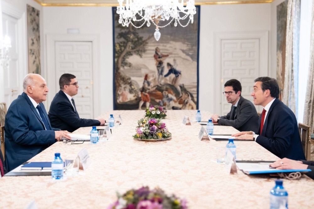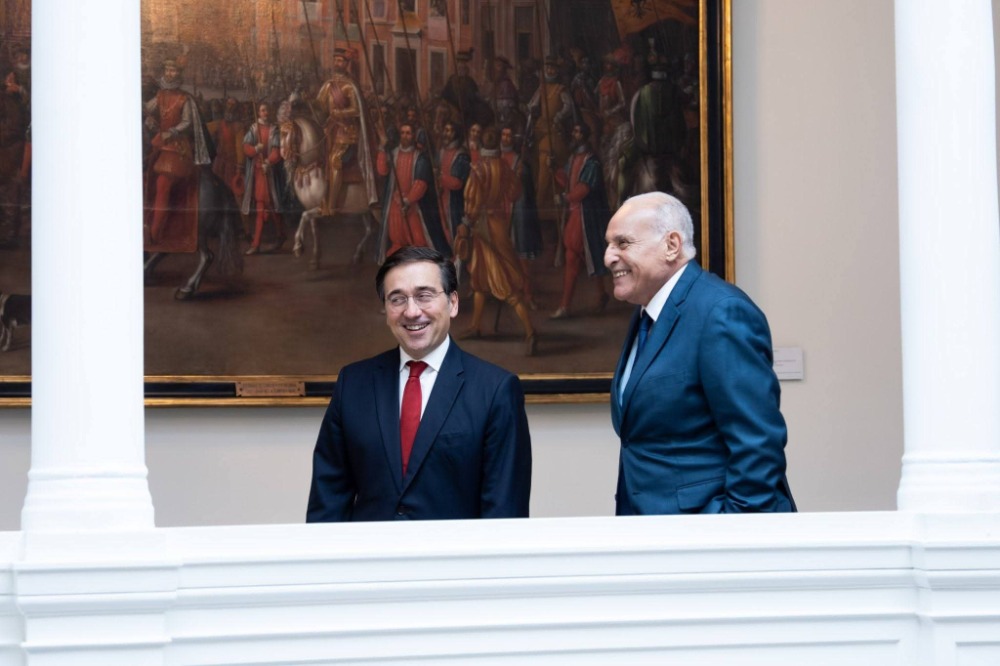 عقد وزير الدولة، وزير الشؤون الخارجية والجالية الوطنية بالخارج والشؤون الإفريقية، السيد أحمد عطاف، اليوم بالعاصمة الإسبانية مدريد، جلسة عمل مع نظيره الإسباني، السيد خوسيه مانويل ألباريس بوينو. وقد جاء هذا الاجتماع الثنائي في إطار زيارة عمل يقوم بها السيّد وزير الدولة إلى المملكة الاسبانية. وفي هذا الصدد، استعرض الطرفان واقع علاقات التعاون والشراكة بين البلدين وآفاق إضفاء المزيد من الحركية عليها، لاسيما في الميادين المرتبطة بالطاقة والتجارة والاستثمار والنقل، فضلا عن التعاون القضائي والقنصلي. وقد تم التأكيد، بهذه المناسبة، على ضرورة انتهاز الزيارة المرتقبة قريبا للوزير الإسباني إلى الجزائر من أجل التحضير الأمثل لعقد الدورة الثامنة للاجتماع رفيع المستوى الجزائري- الإسباني. كما تبادل الوزيران وجهات النظر حول عديد القضايا الدولية والإقليمية ذات الاهتمام المشترك، وفي مقدمتها تطورات الأوضاع في منطقة الساحل الصحراوي والتحديات المشتركة في الفضاء الأورو-متوسطي.